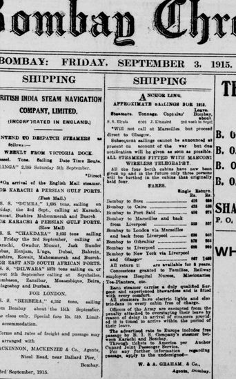 The Bombay Chronicle, 3 September 1915