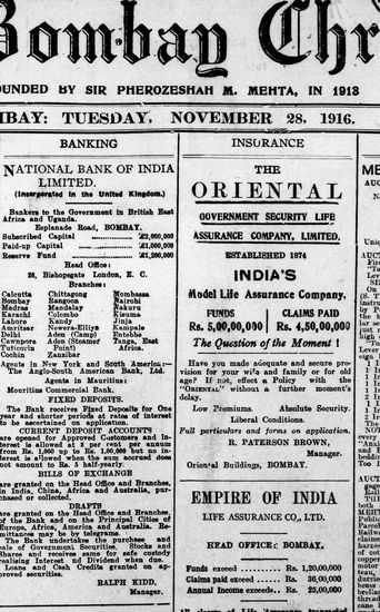 The Bombay Chronicle, 28 October 1916
