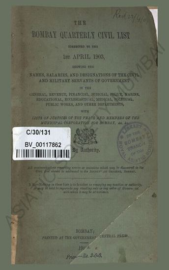 Bombay quarterly civil list corrected to the 1st July 1 ...