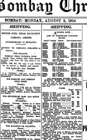 The Bombay Chronicle, 3 August 1914