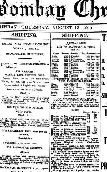 The Bombay Chronicle, 13 August 1914