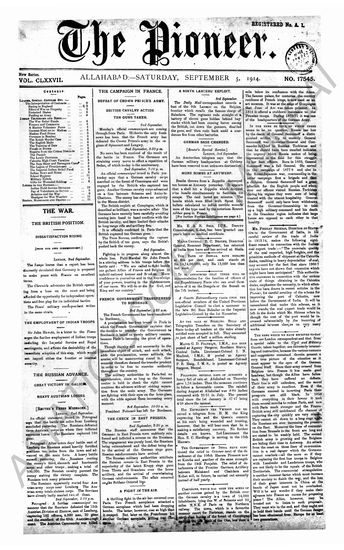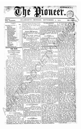 The Pioneer, 7 September 1914