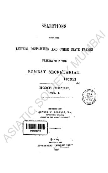 Selections From the Minutes and Others Official Writings of the Honourable Mountstuart Elphinstone