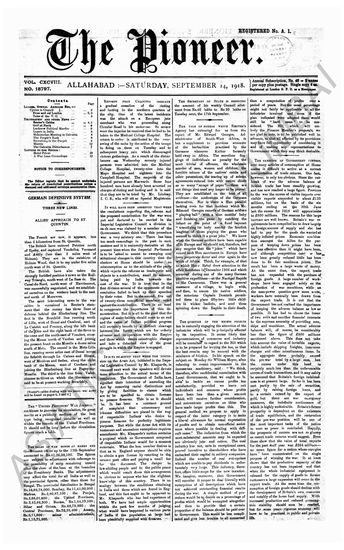 The Pioneer, 14 September 1918
