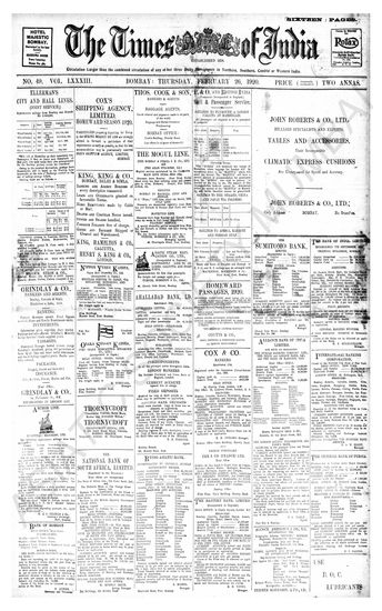 Times of India, February 26, 1920.