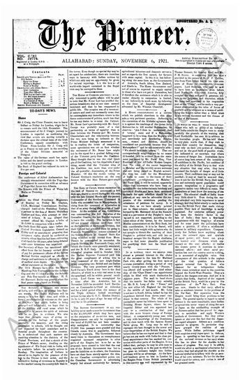 The Pioneer, 6 November 1921