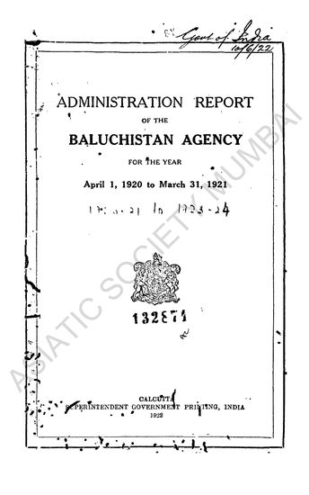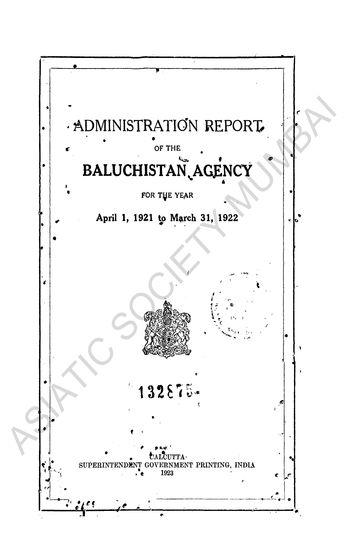 Administration Report of the Baluchistan Agency, for th ...