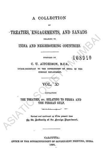 Treaties, Agreements, and Engagements, Between the Honorable East India Company and the Native Princes, Chiefs, and States, in Western India, the Red Sea, the Persian Gulf, &c: Also Between Her Britannic Majesty's Government, and Persia, Portugal, and Turkey