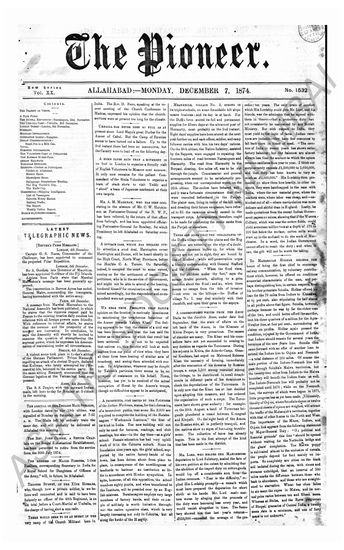The Pioneer, 7 December 1874