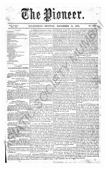 The Pioneer, 21 December 1874