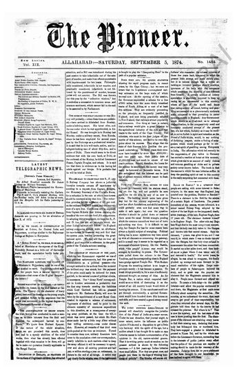The Pioneer, 7 September 1874