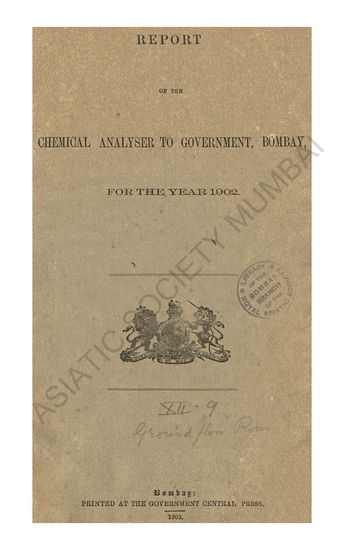 Report on the Chemical Analyser to Government, Bombay, for the Year 1902