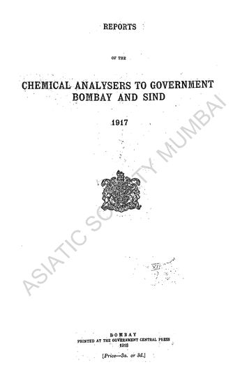 Report on the Chemical Analyser to Government, Bombay, for the Year 1917