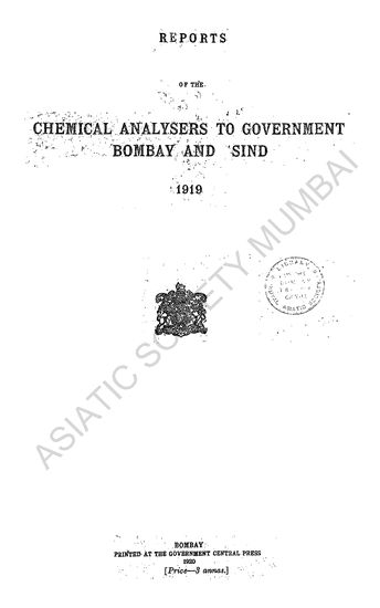 Report on the Chemical Analyser to Government, Bombay, for the Year 1919