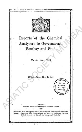 Reports of the Chemical Analysers to Government, Bombay, for the Year 1926
