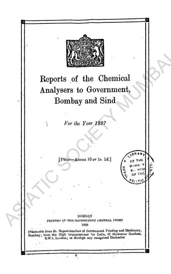 Reports of the Chemical Analysers to Government, Bombay, for the Year 1927