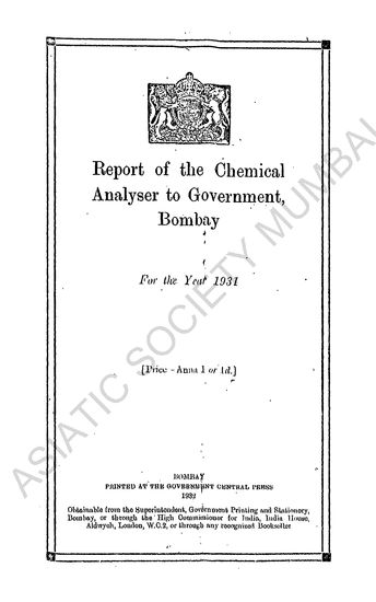 Reports of the Chemical Analysers to Government, Bombay, for the Year 1931