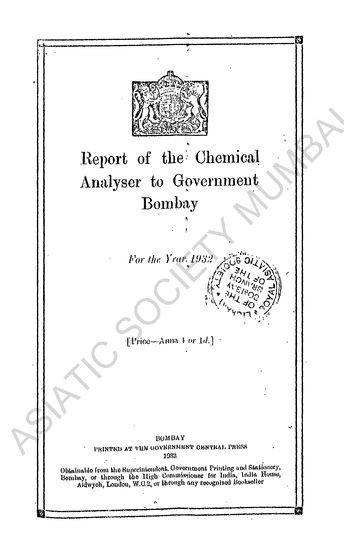 Reports of the Chemical Analysers to Government, Bombay, for the Year 1932