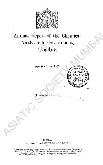 Reports of the Chemical Analysers to Government, Bombay, for the Year 1935