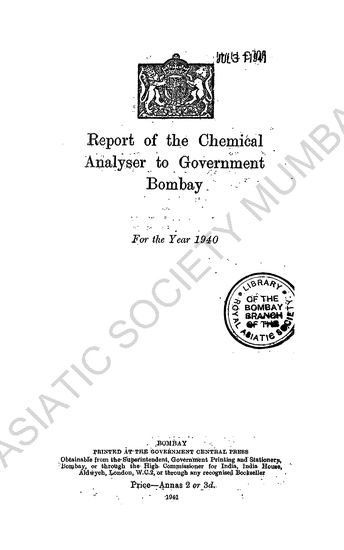Reports of the Chemical Analysers to Government, Bombay, for the Year 1940