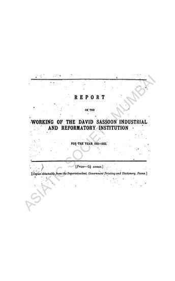 Report on the Working of the David Sassoon Industrial and Reformatory Institution for the Year 1921-1922