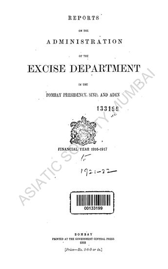 Report on the Administration of the Excise Department in the Bombay Presidency, Sind, and Aden for the Year 1916-1917