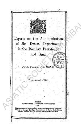 Report on the Administration of Excise Department in the Bombay Presidency,Sind and Aden for the Year 1932-1933