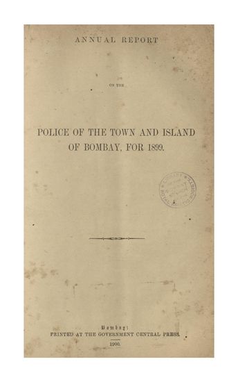 Annual Report on the Police In the Town and Island of Bombay for 1899