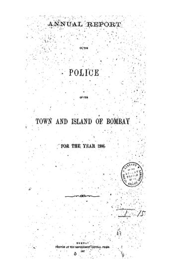 Annual Report on the Police In the Town and Island of Bombay for 1906