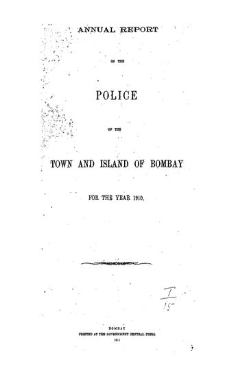 Annual Report on the Police In the Town and Island of Bombay for 1910