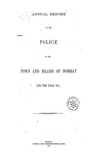 Annual Report on the Police In the Town and Island of Bombay for 1911