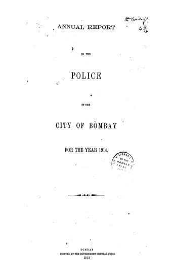 Annual Report on the Police In the Town and Island of Bombay for 1914