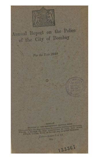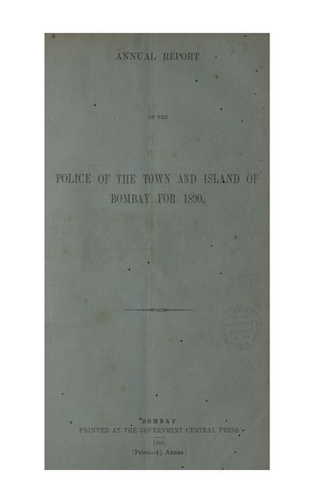 Annual Report on the Police In the Town and Island of Bombay for 1890
