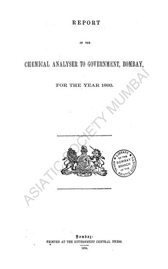 Report of the Chemical Analyser to Government, Bombay, for the Year 1893