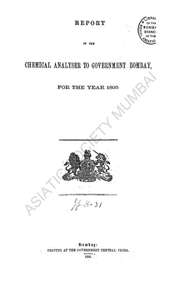 Report of the Chemical Analyser to Government, Bombay, for the Year 1895