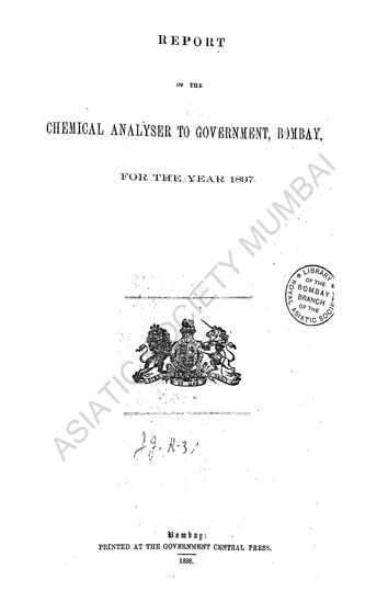 Report of the Chemical Analyser to Government, Bombay, for the Year 1897