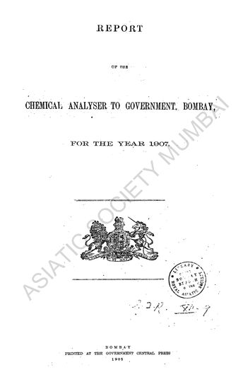 Report on the Chemical Analyser to Government, Bombay, for the Year 1907