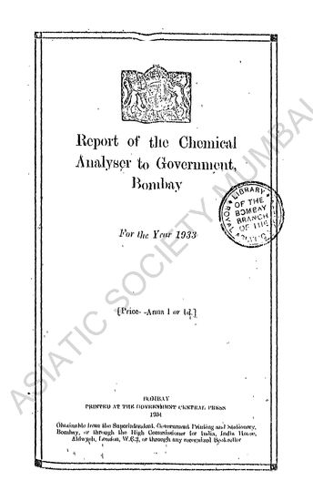 Reports of the Chemical Analysers to Government, Bombay, for the Year 1933