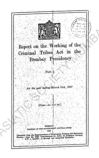Report on the Working of the Criminal Tribes Act in the Bombay Presidency Part-I,For the Year Ending March 31St,1927