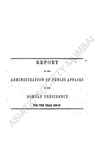 Report on the Administration of Public Affairs in the Bombay Presidency for the Year 1856 - 57 Appendices Only