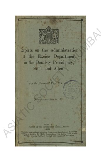 Report on the Administration of Excise Department in the Bombay Presidency,Sind and Aden for the Year 1931-1932