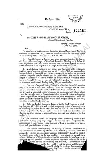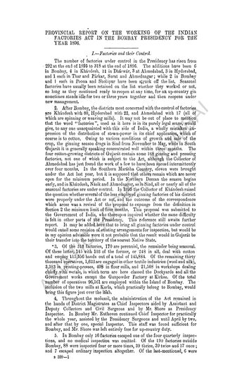 Provincial Report on the Working of the Indian Factories Act in the Bombay Presidency for the Year 1896.(No Title Page)