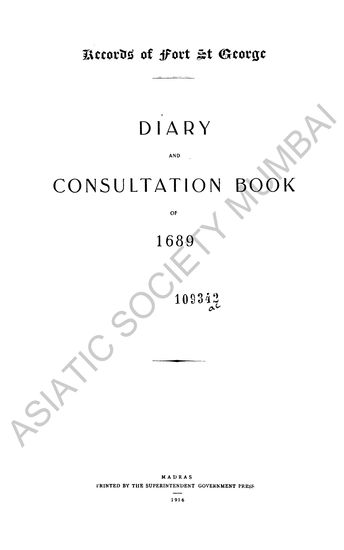 Records of Fort St. George; Diary and Consultation Book of 1689