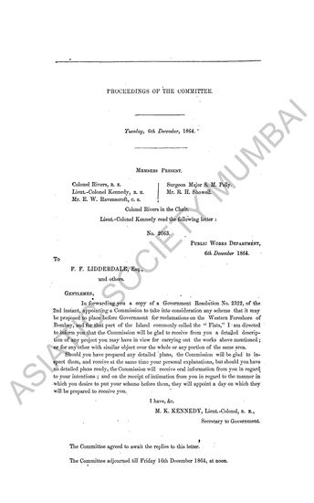 Report of Committee of the Foreshore from Walkeshwar to Love Grove