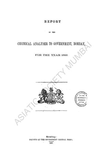 Report of the Chemical Analyser to Government, Bombay, for the Year 1896