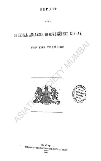 Report of the Chemical Analyser to Government, Bombay, for the Year 1898