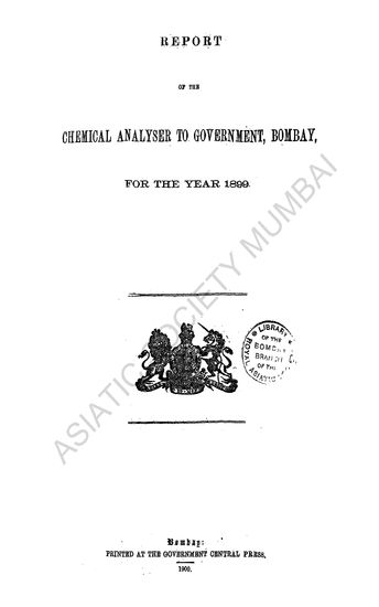 Report of the Chemical Analyser to Government, Bombay, for the Year 1899