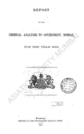 Report on the Chemical Analyser to Government, Bombay, for the Year 1905