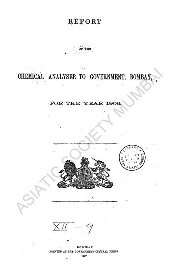 Report on the Chemical Analyser to Government, Bombay, for the Year 1906