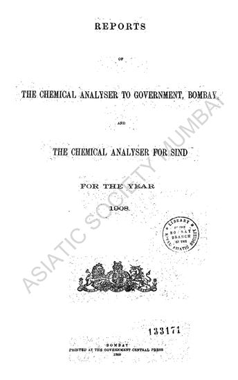 Report on the Chemical Analyser to Government, Bombay, for the Year 1908